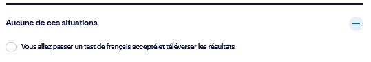 Si aucune des situations ne vous correspond, il faudra cocher cette case, puis faire un des tests de français acceptés par l'Université de Montréal.